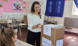 Espert llegó al Colegio de la Santa Cruz y habló brevemente con la prensa apostada sobre la calle Pedro de Mendoza: “Vengo con mucha tranquilidad, no tengo nada más que decir”, comentó al llegar, antes de pasar al aula donde funcionaba la mesa 0167 asignada para su voto.