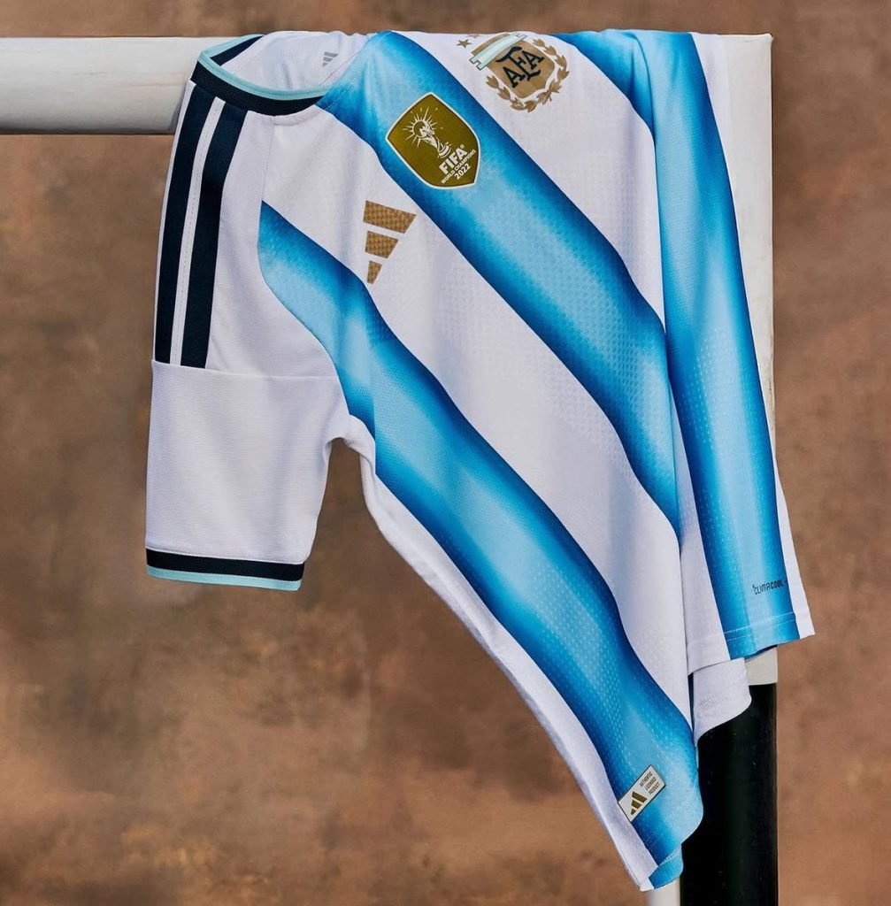 El nuevo modelo presenta las tradicionales franjas celestes y blancas con un efecto degradado de tres tonos de celeste, en alusión a las camisetas de los títulos de 1978, 1986 y 2022. En la parte posterior del cuello aparece la inscripción “1893”, año de fundación de la AFA, mientras que los detalles dorados —como el escudo de campeones del mundo— rinden tributo al logro en Qatar.