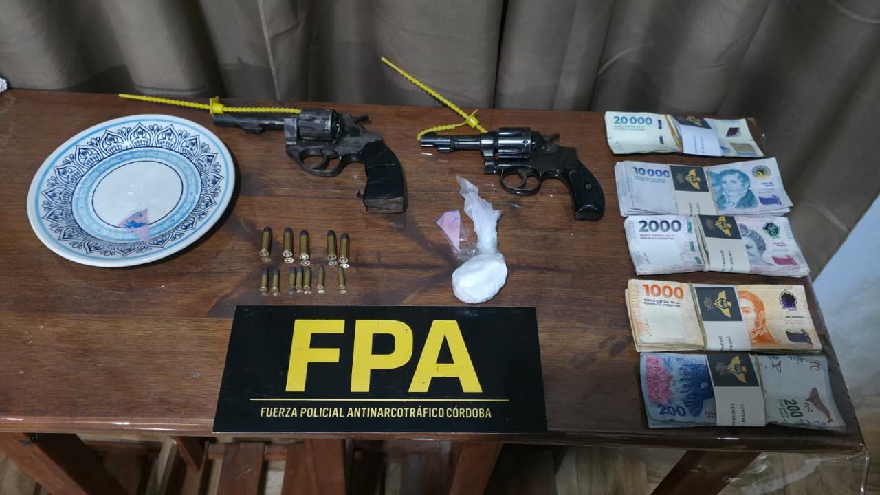 Durante los allanamientos se secuestraron 208 dosis de cocaína y dos de marihuana, dos armas de fuego calibres .32 y .22, 17 cartuchos, dinero en efectivo y diversos elementos de interés para la causa.