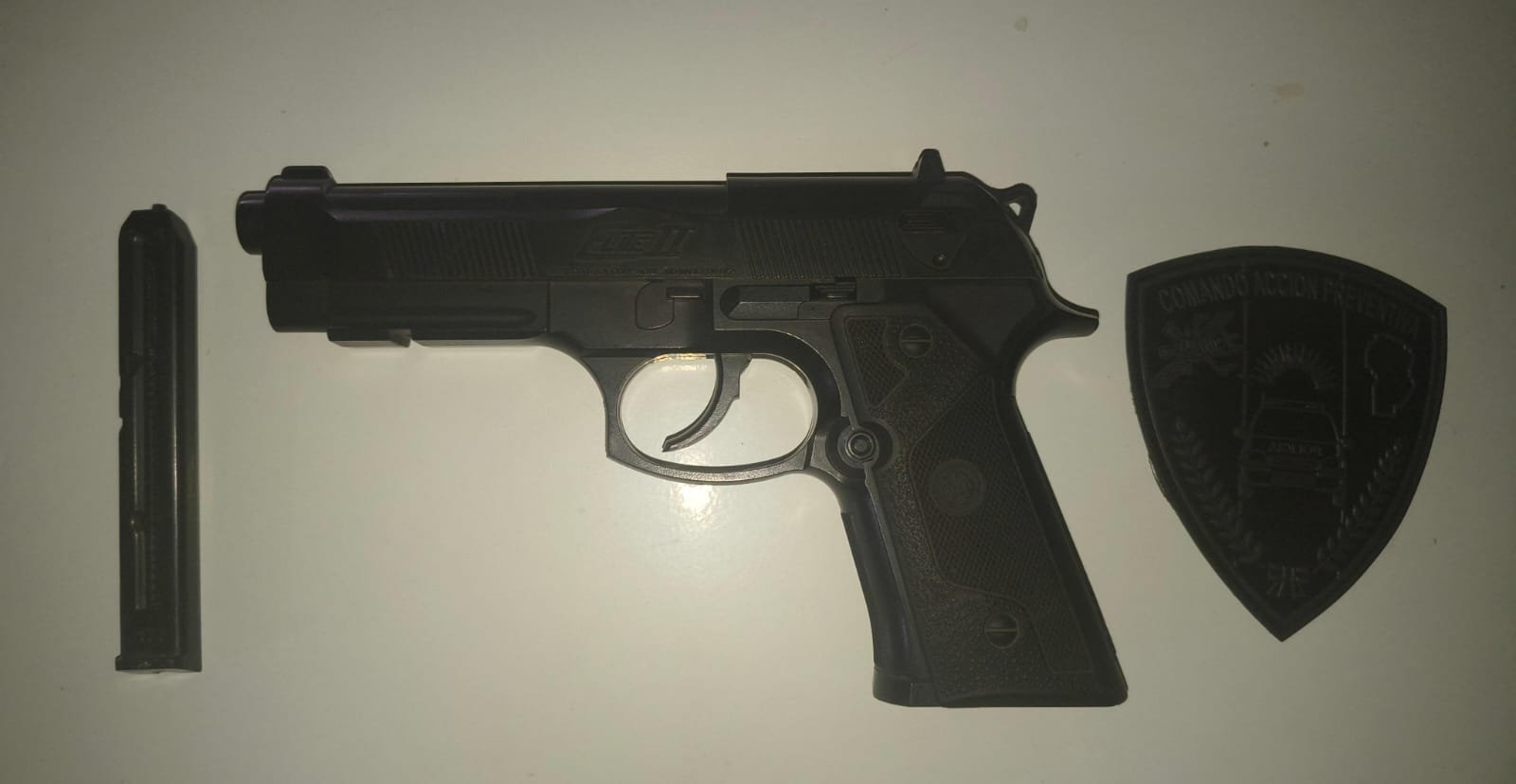 Alrededor de las 06:00 horas de este jueves, personal de la Patrulla Preventiva procedió a la aprehensión de dos sujetos en la intersección de calles Intendente Arines y Buenos Aires. Ambos fueron imputados como supuestos autores del delito de "Amenazas Calificadas" en un procedimiento que incluyó el secuestro de una réplica de arma de fuego y un vehículo con pedido de captura.