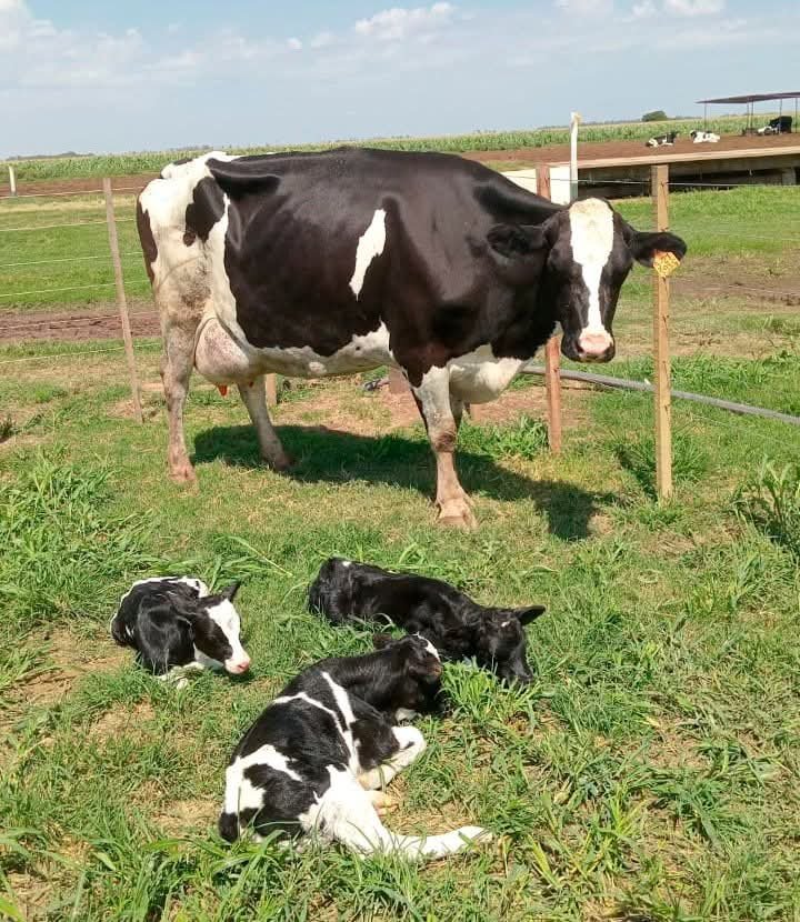 Una vaca dio a luz trillizos en un tambo de la región