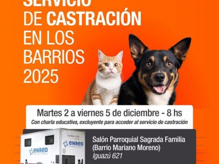 Se realizará una nueva semana de castraciones en barrio Mariano Moreno
