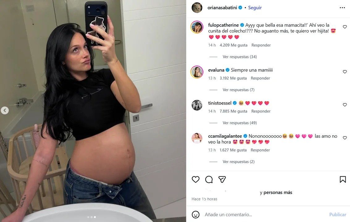 Uno de los comentarios que destacaron de la publicación fue el de su madre, Catherine Fulop, quien hizo mención a la compra que se encuentra detrás de Oriana en la foto: “Ayyy que bella esa mamacita!!’ Ahí veo la cunita del colecho!??? No aguanto más, te quiero ver hijita!