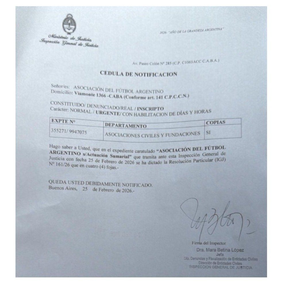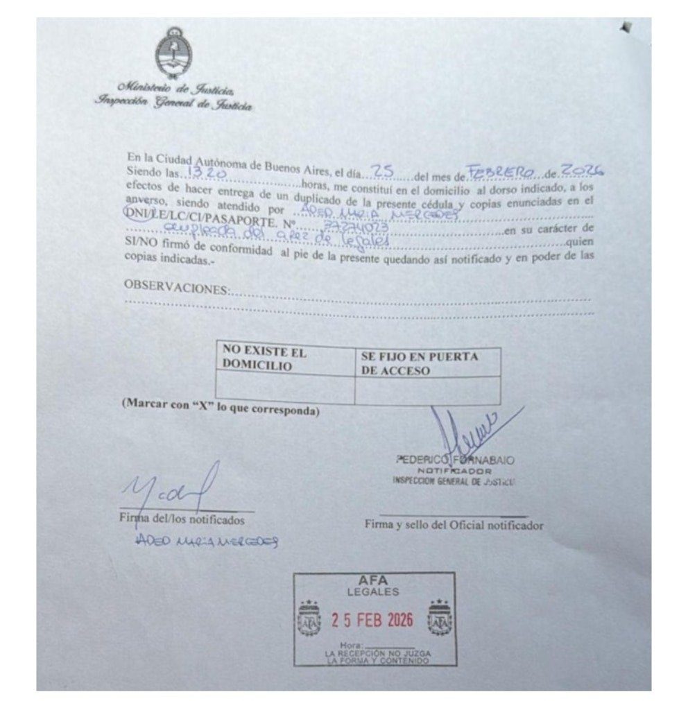 Este pedido se formula tras un episodio reciente en el que la IGJ rechazó la pretensión de la AFA de inscribir un cambio de domicilio a la provincia de Buenos Aires. Según Vítolo, el intento de traslado no cumplió con los requisitos legales y, según el organismo, se detectó una sede social falsa, ya que en el lugar declarado se comprobó que la AFA no realiza allí su administración y gobierno.